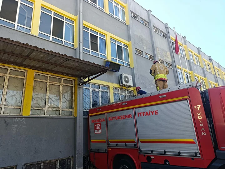 Vatandaşlar, durumu 112 Acil Çağrı Merkezi’ne bildirdi. İhbar üzerine okula Manisa Büyükşehir Belediyesi Turgutlu İtfaiye Amirliği ve polis ekipleri sevk edildi.